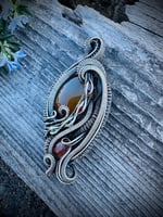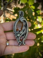This is a beautiful .925 sterling silver pendant. It encases a carnelian and a smaller sunstone as the center stones and small faceted accents stone across the piece. The accent stones are red garnet, orange fire opal, yellow topaz and green peridot.